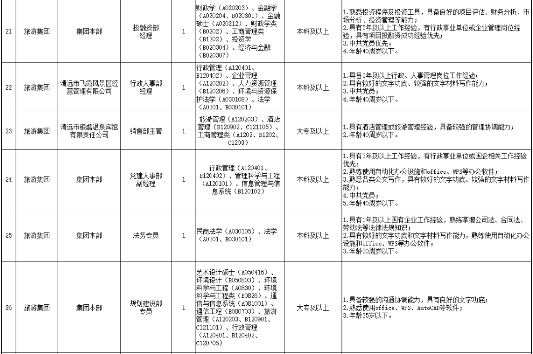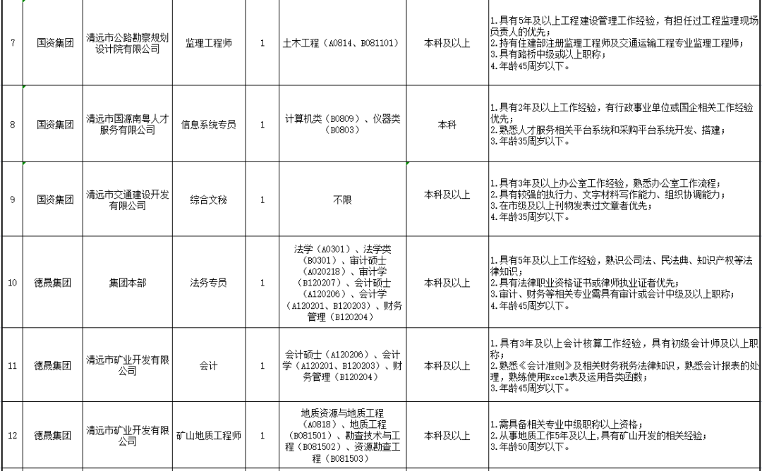 詳見清遠(yuǎn)市市屬國有企業(yè)2022年公開招聘工作人員崗位表。