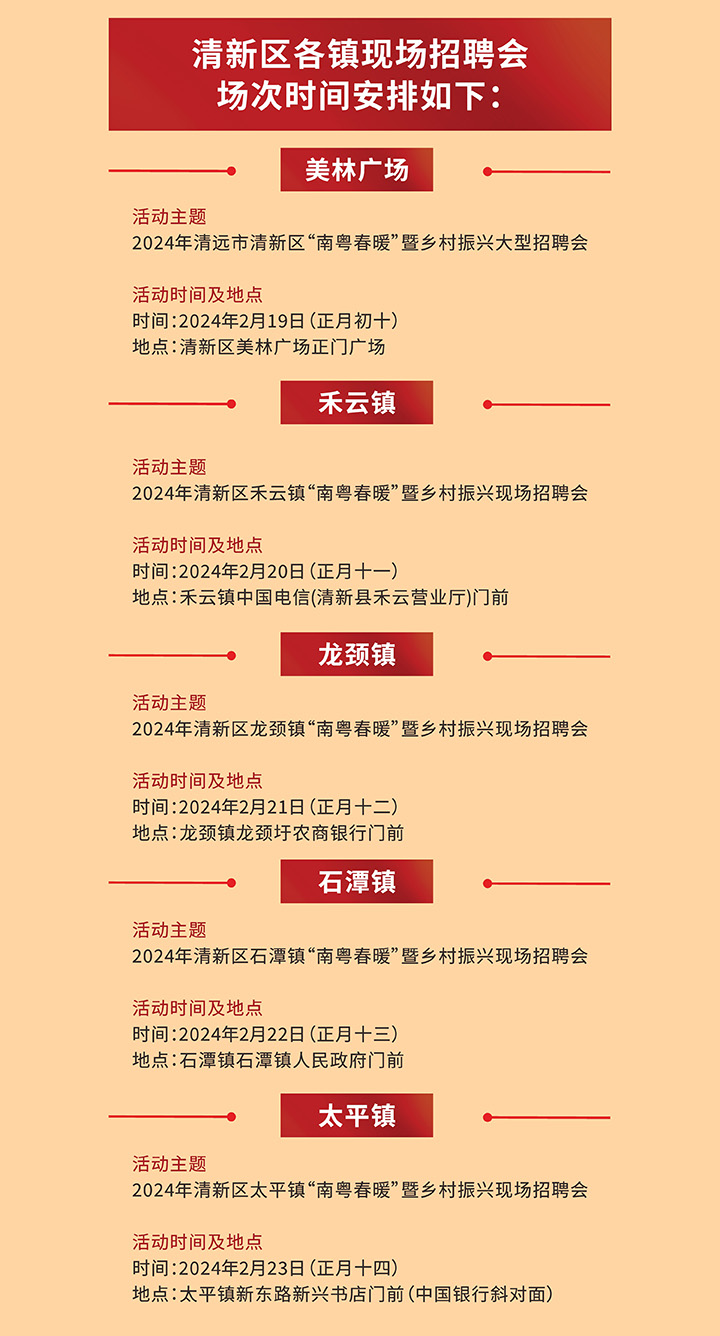 招聘會(huì)預(yù)告|2024年清遠(yuǎn)市清新區(qū)“南粵春暖”暨鄉(xiāng)村振興大型招聘會(huì)