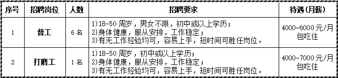 嶄新的標(biāo)準(zhǔn)工業(yè)廠房,工作環(huán)境舒適,新裝修的宿舍,設(shè)施齊全,居住環(huán)境溫馨。享受國(guó)家法定有薪假期、生日福利、節(jié)日福利、年終福利、公司年會(huì)、旅游等。本公司訂單充足穩(wěn)定,長(zhǎng)白班,待遇好,包吃住,準(zhǔn)時(shí)發(fā)放工資。所招崗位的工作內(nèi)容均有人教,晉升和加薪空間大。歡迎來公司面試或電話詳細(xì)了解!
